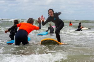 We sit down for a short moment and explain you everything you need to know about the equipment, safety and of course how to surf!