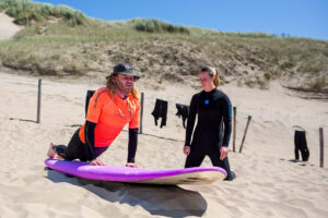 Van jong tot oud, van beginners tot gevorderden. Als je kan zwemmen kunnen wij je leren surfen. Door een professionele en duidelijke uitleg gaat iedereen met volle vertrouwen het water in. Veiligheid staat bij ons altijd op de eerste plek. Al onze surfinstructeurs zijn op de hoogte van de gevaren van de Noordzee. Daarbij zijn er gecertificeerde strandwachters aanwezig die iedereen nauwkeurig in de gaten houden. Let op! Een zwemdiploma is vereist.